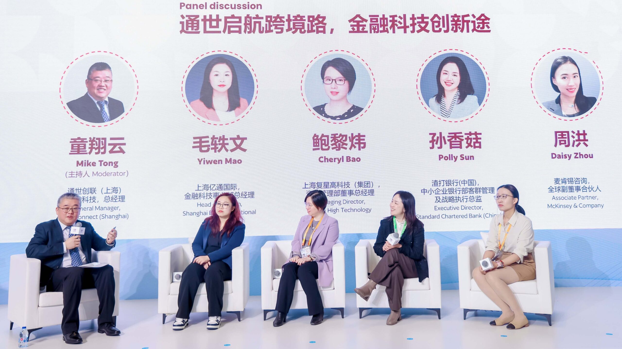 在启动仪式上,我们邀请了来⾃政府组织、企业、银⾏和专业机构的代表就中国企业的跨境业务展开圆桌讨论。来⾃上海亿通国际⾦融科技事业部的总经理⽑轶⽂⼥⼠、上海复星⾼科技(集团)资⾦管理部的董事总经理鲍黎炜⼥⼠、渣打银⾏(中国)中⼩企业银⾏部的客群管理及战略执⾏总监孙⾹菇⼥⼠以及⻨肯锡咨询全球副董事合伙⼈周洪⼥⼠等嘉宾就跨境贸易发展新趋势和新机遇、企业国际化进程中常⻅挑战、⾦融与科技如何有效融合以解决企业痛点等热点议题畅所欲⾔,展开脑⼒激荡和思想碰撞。